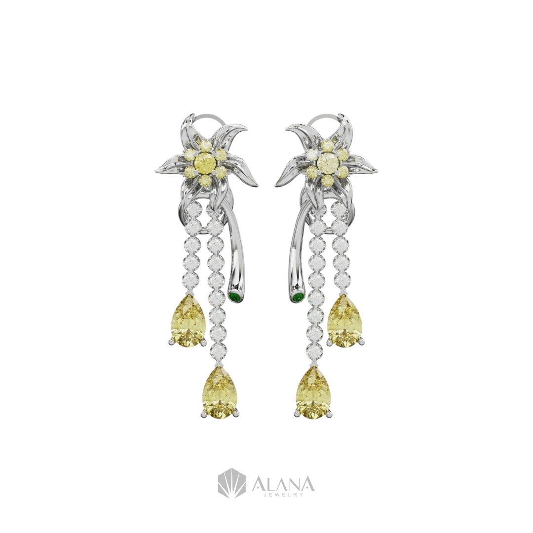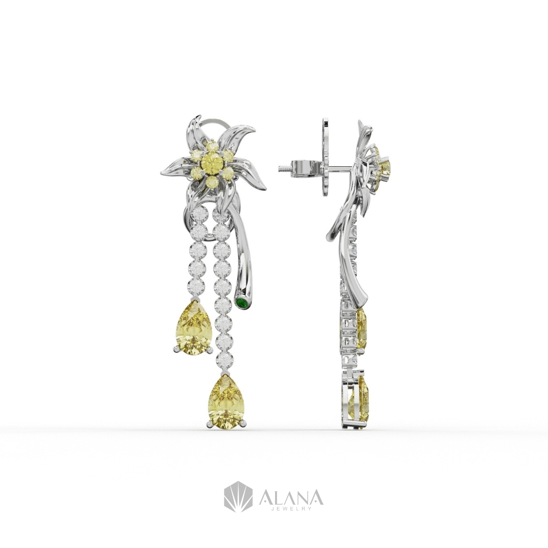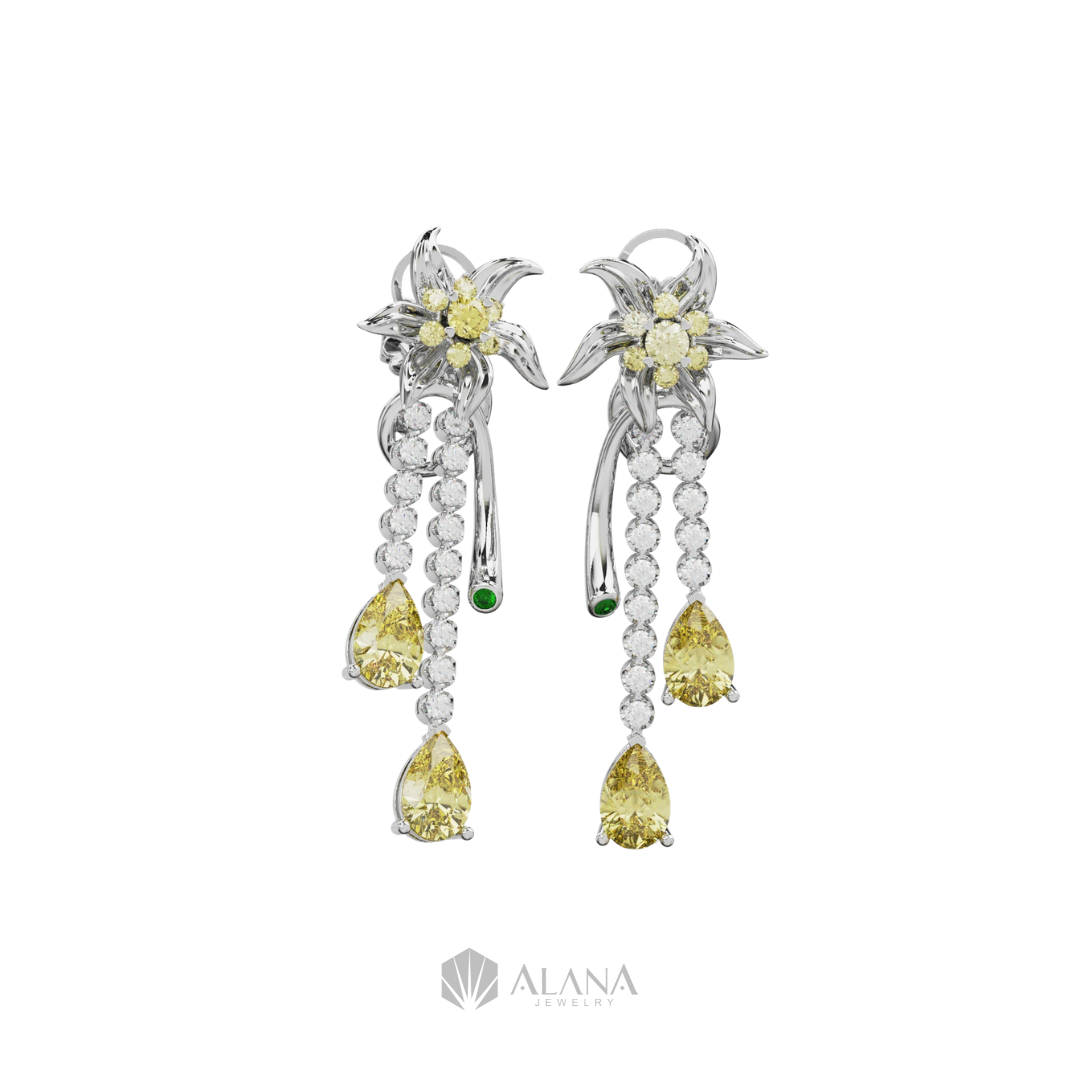 Bông Tai Dáng Dài Hình Hoa Bách Hợp Đính Đá Moissanite – EWS033021