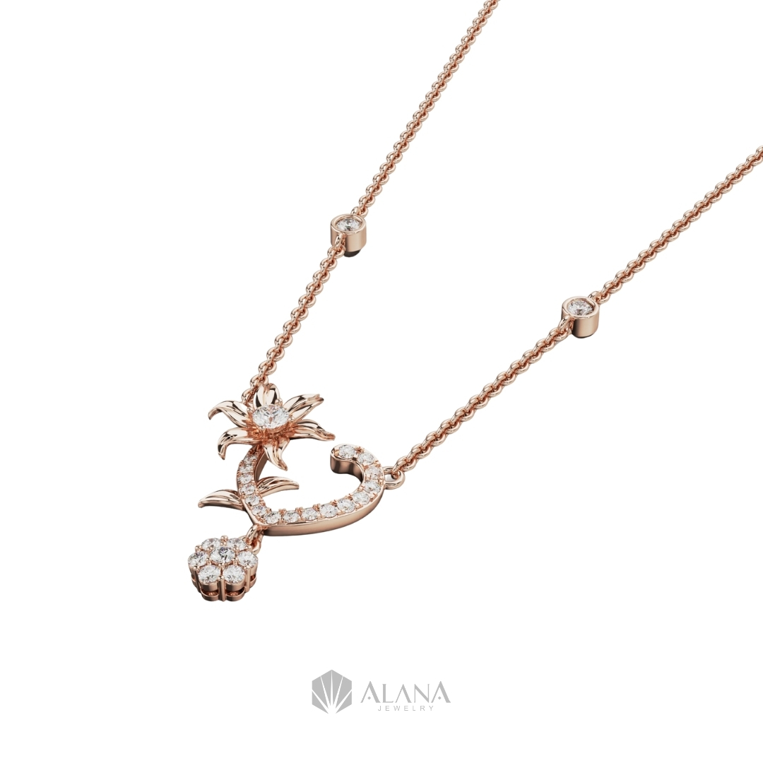Dây Chuyền Hình Hoa Bách Hợp Mix Trái Tim Đính Đá Moissanite – NLRS032017
